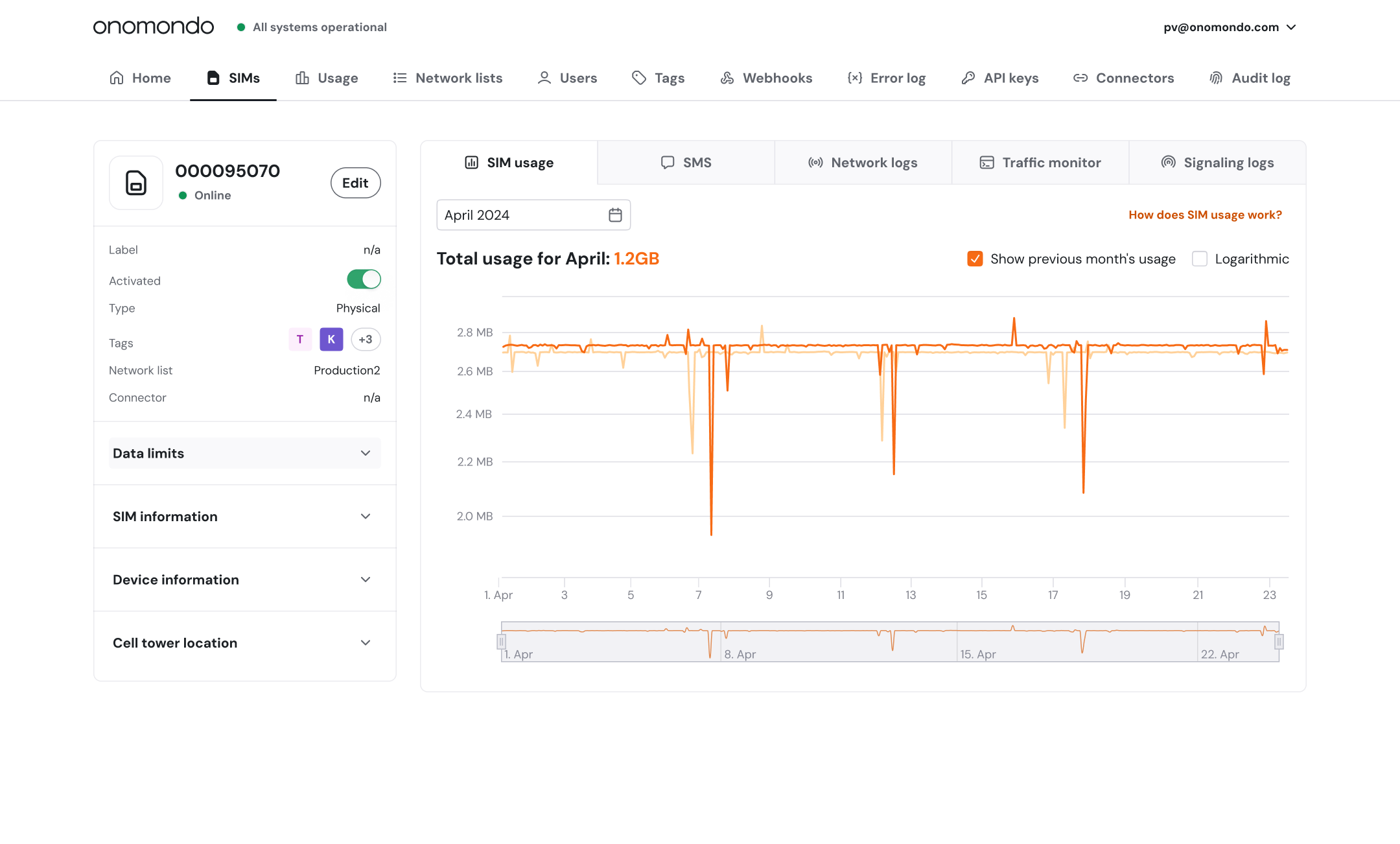 Ich bin ein großer Fan von Onomondo, und das, was ich am meisten liebe, ist die Möglichkeit, meine SIM-Flotte programmatisch über die Onomondo-API zu steuern. Die API ist einfach zu bedienen und bietet viele Funktionen. Die Kontrolle über den Zustand unserer SIMs bedeutet, dass wir eine viel bessere Kontrolle über unsere Abrechnung und Nutzung haben. Wir verwenden die API auch in unserer Fertigung, um Soft-SIMs auf unsere nordische NRF-Hardware zu implementieren. Bewertung gesammelt von und auf G2.com gehostet.