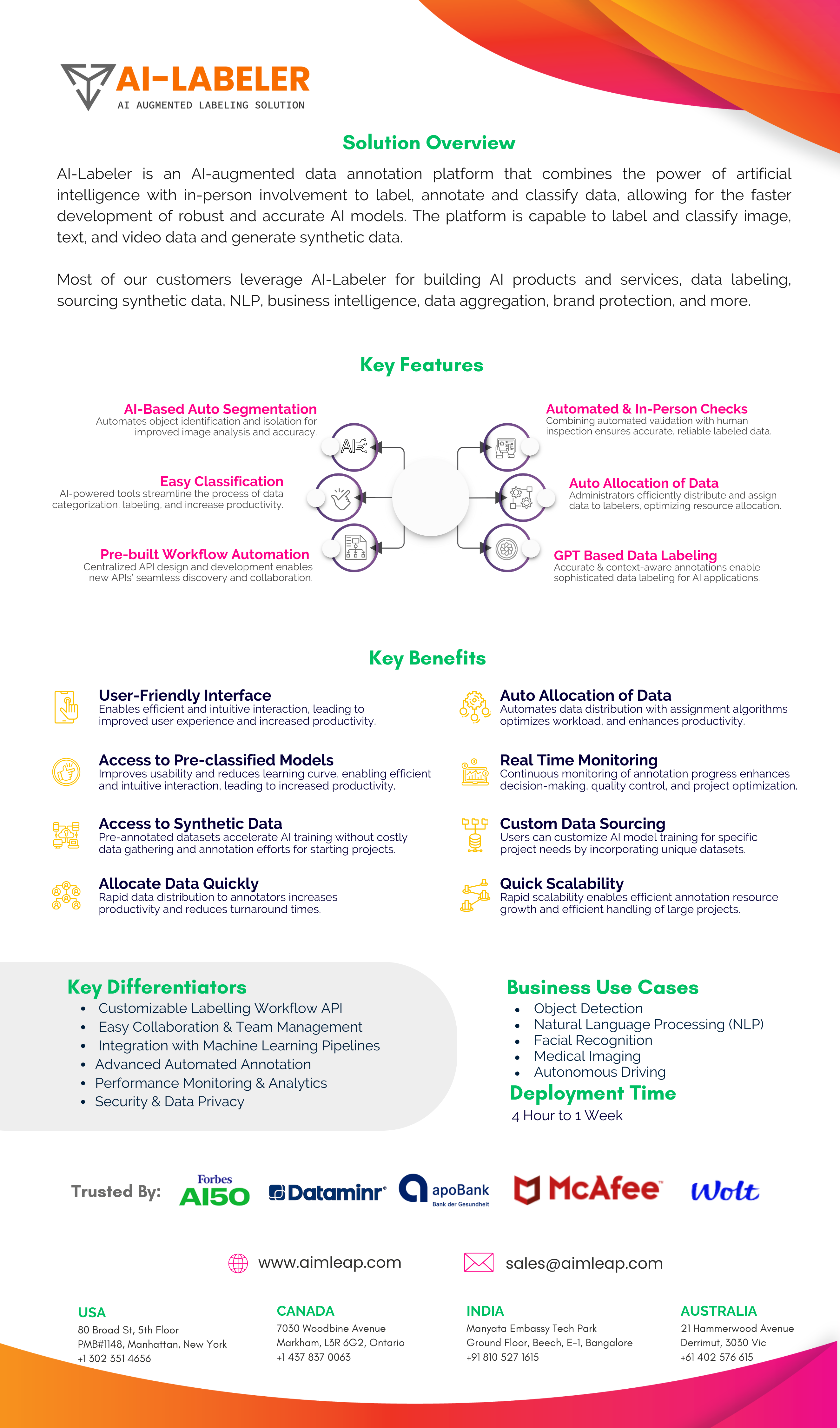 AI-Labeler es una plataforma de anotación de datos aumentada por IA que combina el poder de la inteligencia artificial con la participación en persona para etiquetar, anotar y clasificar datos, permitiendo un desarrollo más rápido de modelos robustos y precisos.