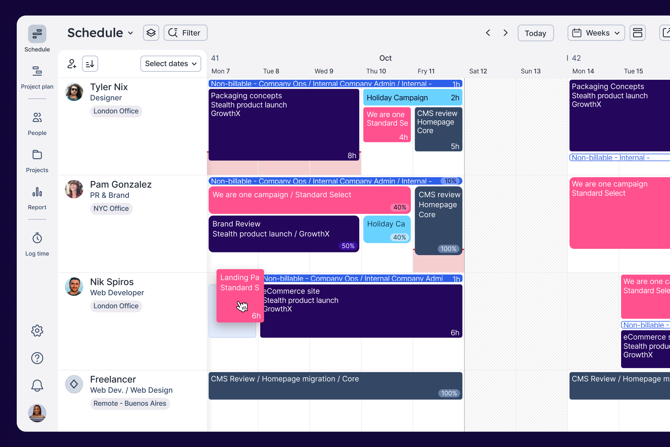 Migliorata Gestione delle Risorse: Float mostra come viene allocato il tempo del mio team, così posso prendere decisioni migliori su chi dovrebbe lavorare su cosa ed evitare di sovraccaricare i membri del team.