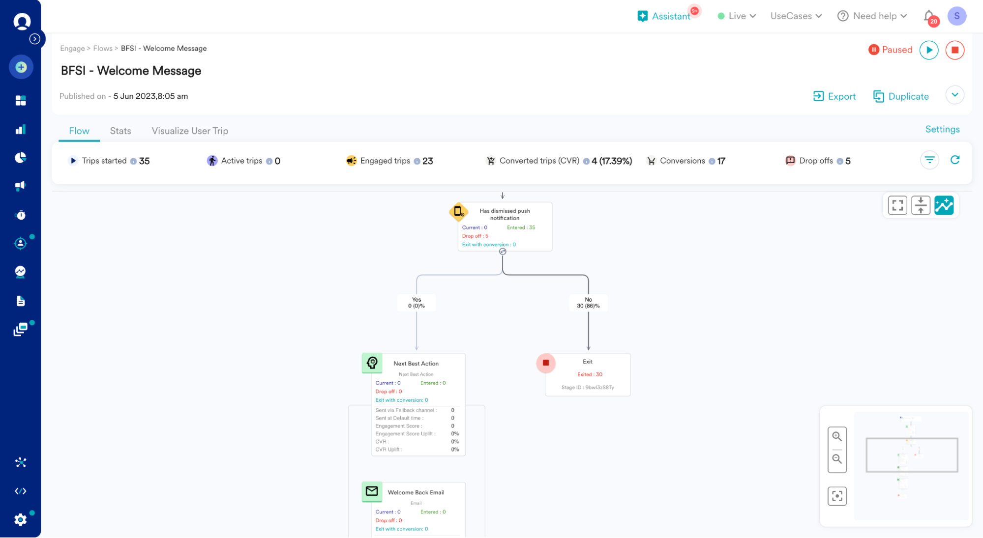 Mi piace quanto sia facile creare e gestire i percorsi utente con MoEngage senza bisogno di un pesante supporto tecnico. Il costruttore di percorsi è impressionante, permettendo al nostro team di impostare rapidamente campagne come promemoria di onboarding e flussi di ri-engagement. Apprezzo molto la capacità di segmentazione perché possiamo creare segmenti di utenti molto specifici basati sul comportamento, il che rende le nostre campagne più mirate ed efficaci. Da una prospettiva di QA, è utile che possiamo facilmente tracciare se le campagne vengono attivate correttamente e monitorare il flusso degli utenti. La dashboard di analisi è un altro punto di forza poiché fornisce chiari approfondimenti sulle prestazioni delle campagne come aperture, clic e conversioni, aiutandoci a fare miglioramenti rapidi. MoEngage è uno strumento affidabile per gestire il coinvolgimento dei clienti, e la sua facilità d'uso e la flessibilità nella creazione dei percorsi sono stati motivi chiave per il nostro passaggio da CleverTap. L'installazione iniziale è stata rapida e abbastanza fluida, supportata dalla documentazione e dal supporto disponibili. Recensione raccolta e ospitata su G2.com.