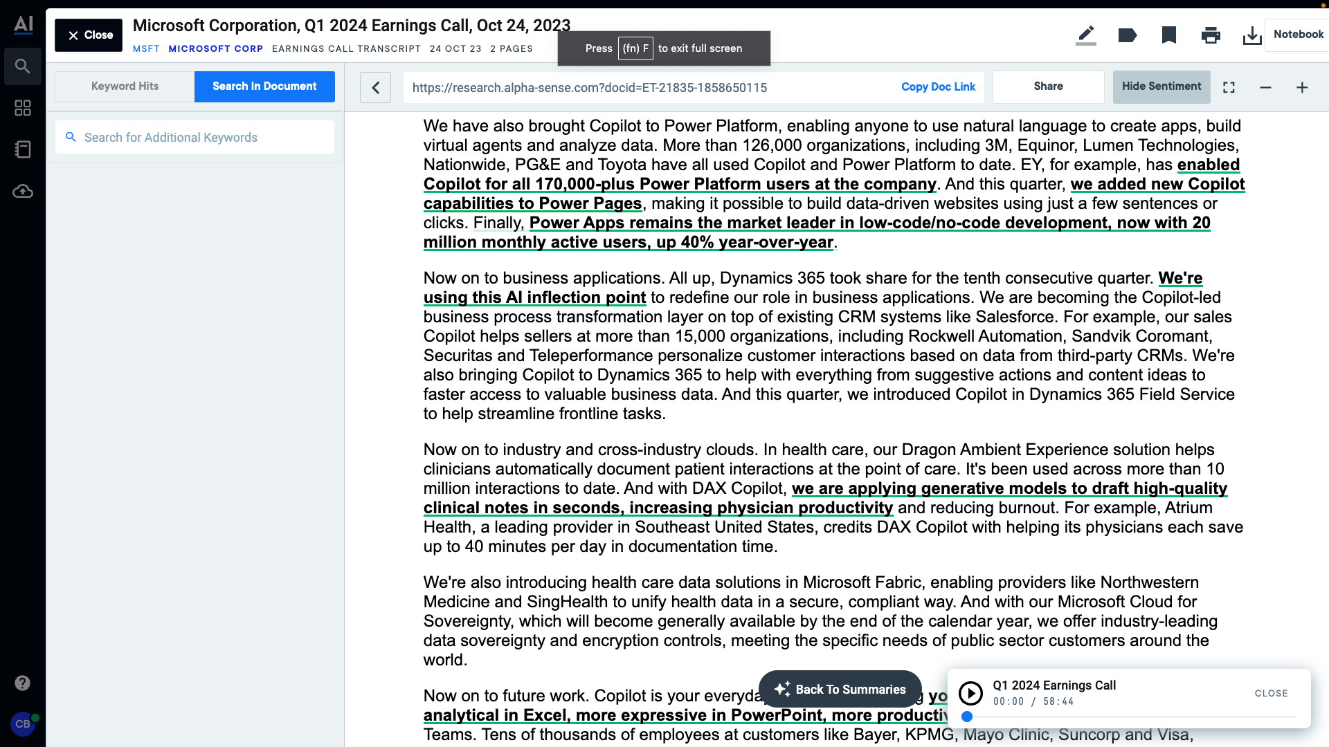I really like AlphaSense because it stands out among similar CI platforms. It brings together an exceptionally large library of premium financial, corporate, and industry content with advanced, context-aware AI search that surfaces highly relevant insights in seconds, saving analysts and consultants significant research time. I also appreciate its generative AI features, which synthesize findings with citations, and the option to integrate internal company documents so everything lives in a single, secure research hub for both proprietary and external information. Overall, these capabilities support faster, more accurate decision-making and make it easier to streamline collaboration across teams. Review collected by and hosted on G2.com.
