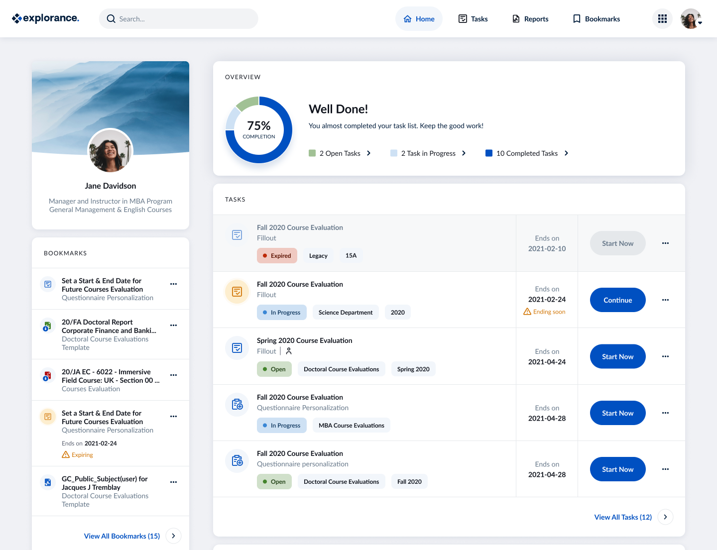 Explorance Blue is a feedback analytics platform that helps institutions and organizations gather, analyze, and act on feedback at scale. From course evaluations and student experience surveys to employee engagement and 360-degree feedback, Blue supports a wide range of feedback use cases. With flexible workflows, deep integration capabilities, and powerful analytics, Blue adapts to your unique structures and systems – whether centralized or decentralized. Automate survey delivery, streamline reporting, and turn feedback into meaningful insights that drive continuous improvement in student and employee experiences.
