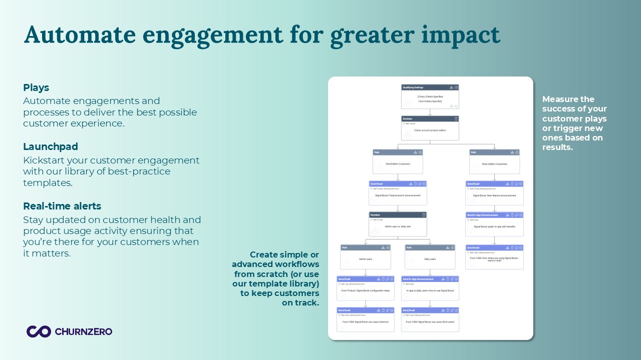 I truly appreciate how ChurnZero thinks about how we drive true Customer Success within our customer partners. They are on the forefront of developing technology and playbooks which help drive insights and automation to help scale our teams. The UX is intuitive and we look forward to implementing AI within ChurnZero. Review collected by and hosted on G2.com.
