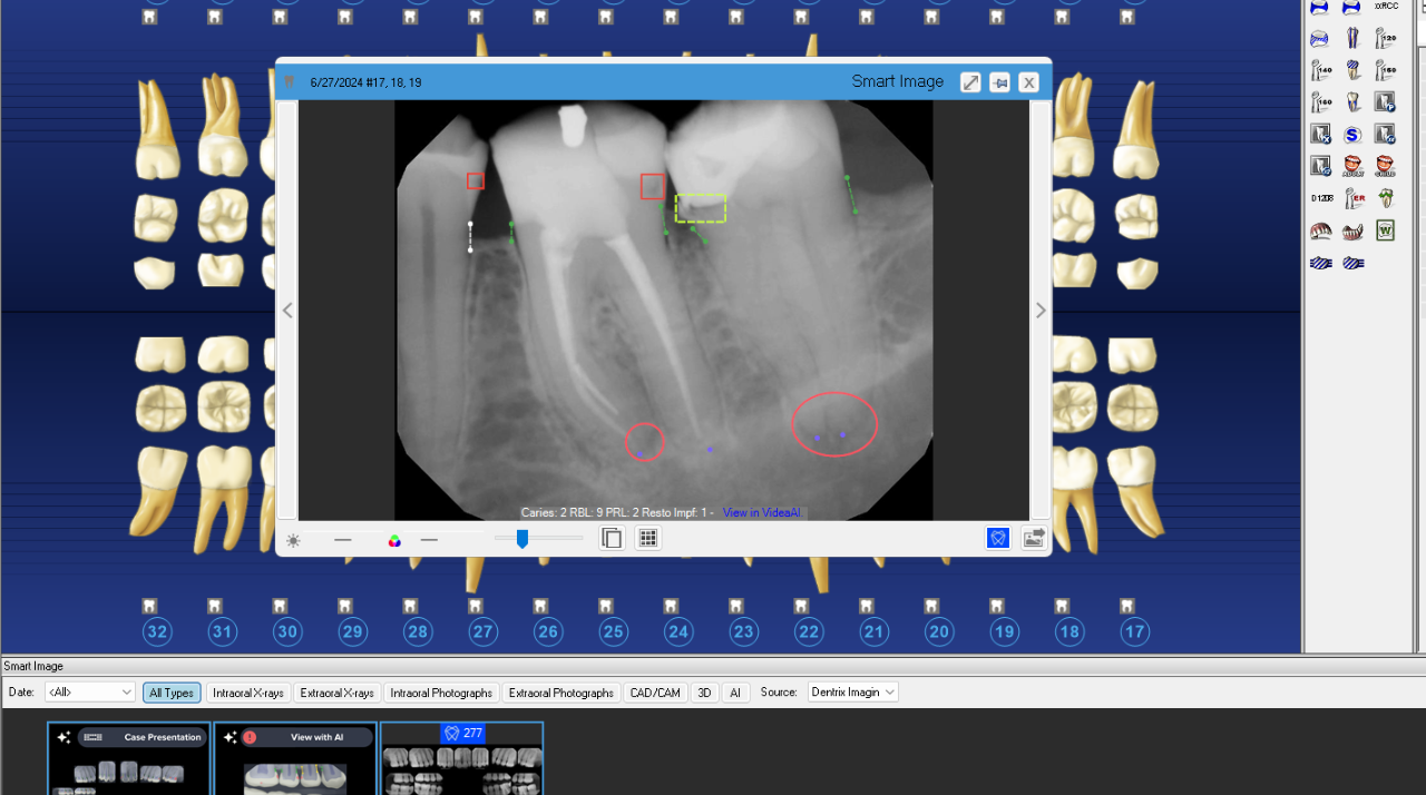 Dentrix Detect AI, powered by VideaHealth, analyzes X-rays to detect caries and radiographic bone loss with confidence
