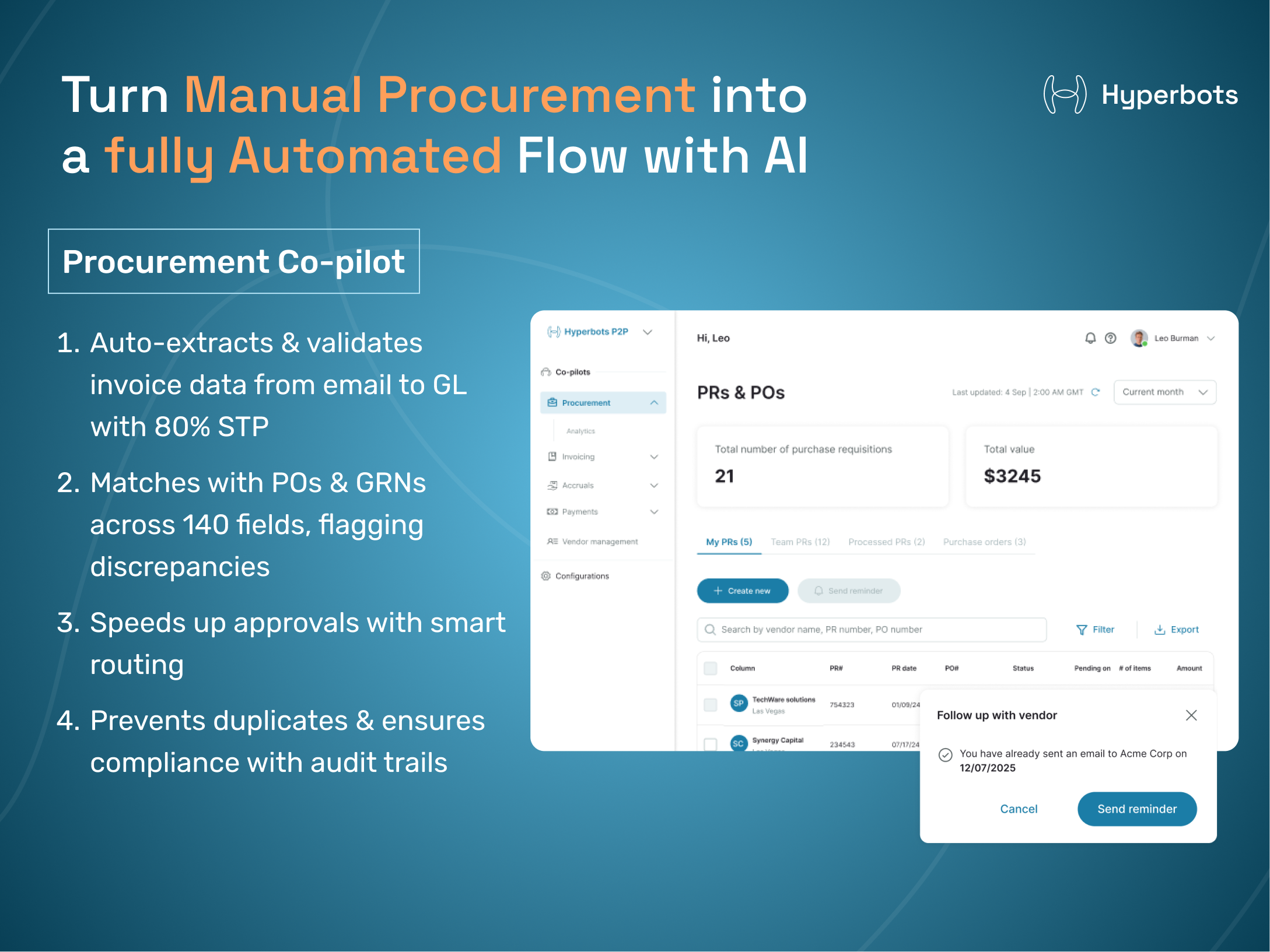 So far, we haven’t faced any significant issues with Hyperbots A/P suite. For some minor glitches along the way, the support team has been prompt addressing them, so they haven’t impacted our overall experience. Review collected by and hosted on G2.com.