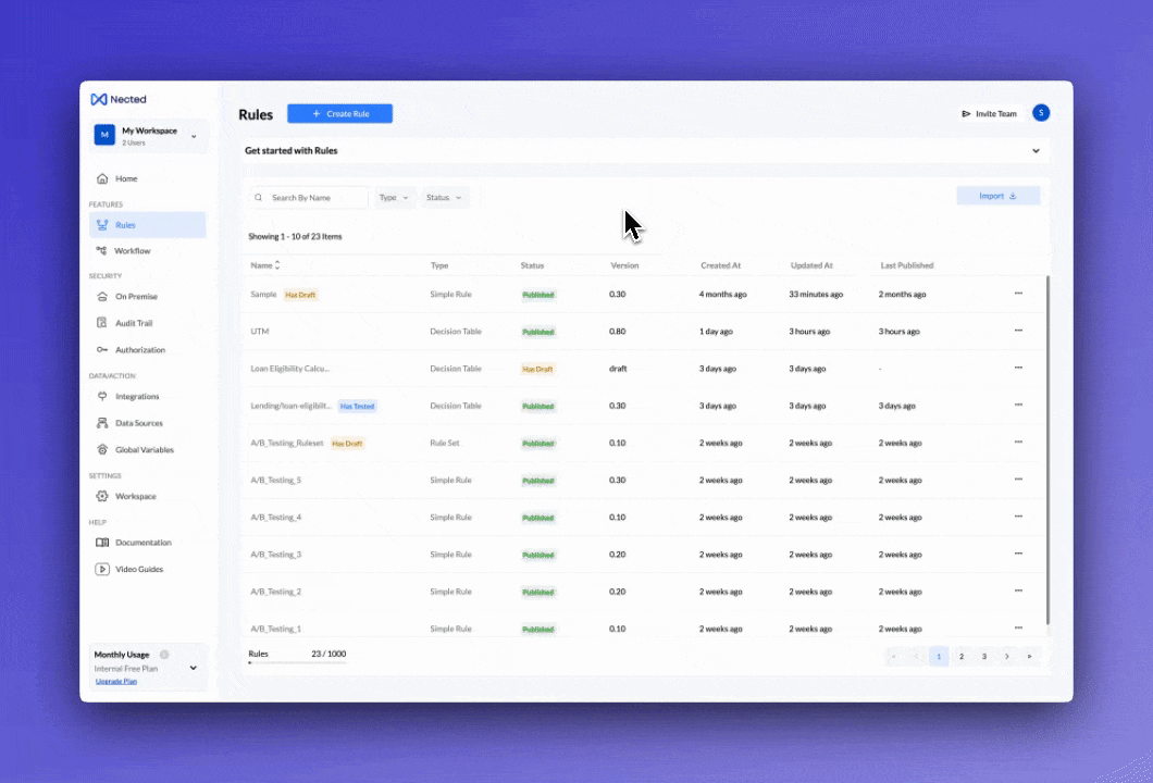 Nected is a software that helps us in creating baseline rules for our business and these rules helps us in automatisation of all the work flow that are necessary to run our business. we are able to create day to day systems which are needed to be followed by each and every employee so that a hassle-free process implementation can be done and maximum returns can be generated. Review collected by and hosted on G2.com.