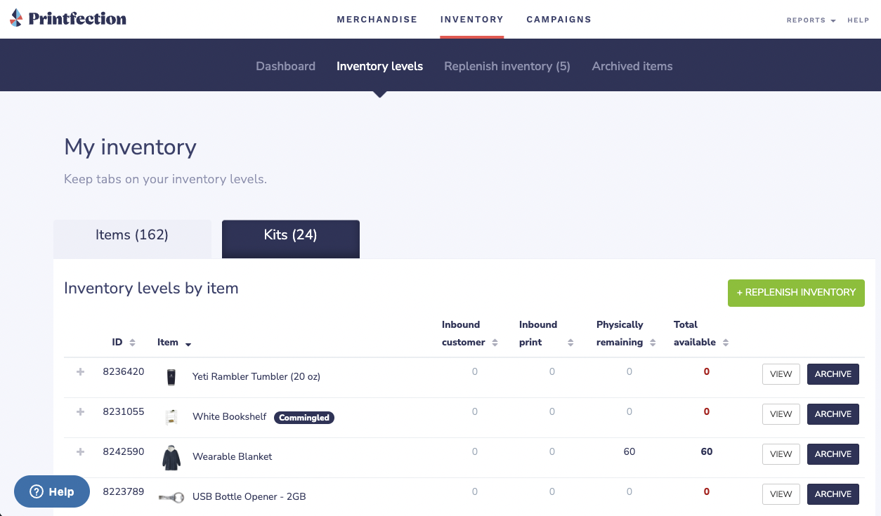 We can of course send swag directly to your office or any location, but the true brilliance behind Printfection is that we’ll store all of your swag for you! No more messy office closet or dungeon.