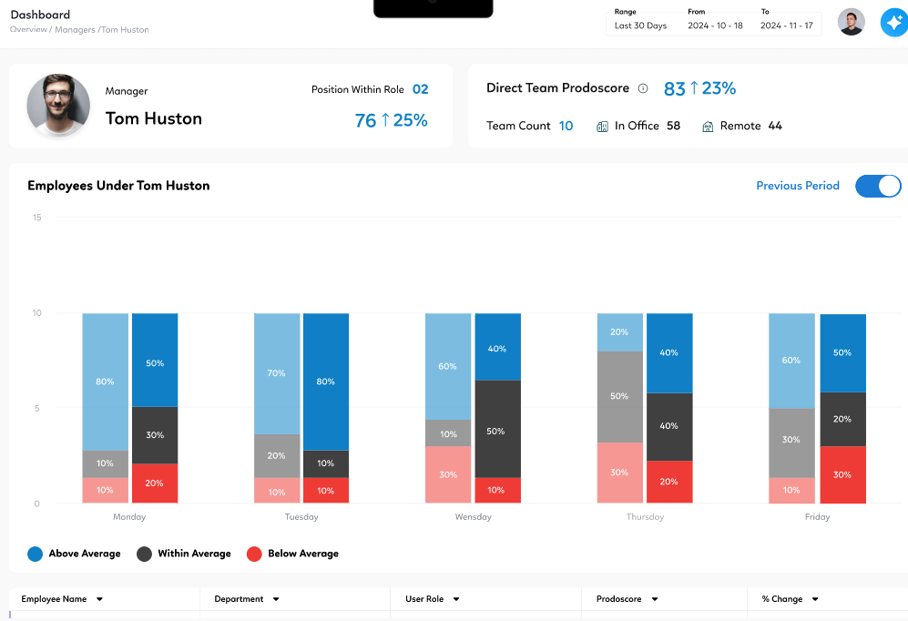 I like how Prodoscore gives insights into how our employees are working throughout the day - their patterns, rhythms, and what types of tools they are using and how frequently to do their jobs. I also like that it is honestly not too intrusive. Still protects the privacy of those being monitored. Review collected by and hosted on G2.com.