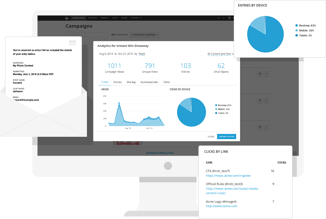 Build viral contests, giveaways, quizzes, polls, and other interactive digital content. Pick from 150+ fully customizeable templates. Launch campaigns that explode engagement and leads. Try it for free!