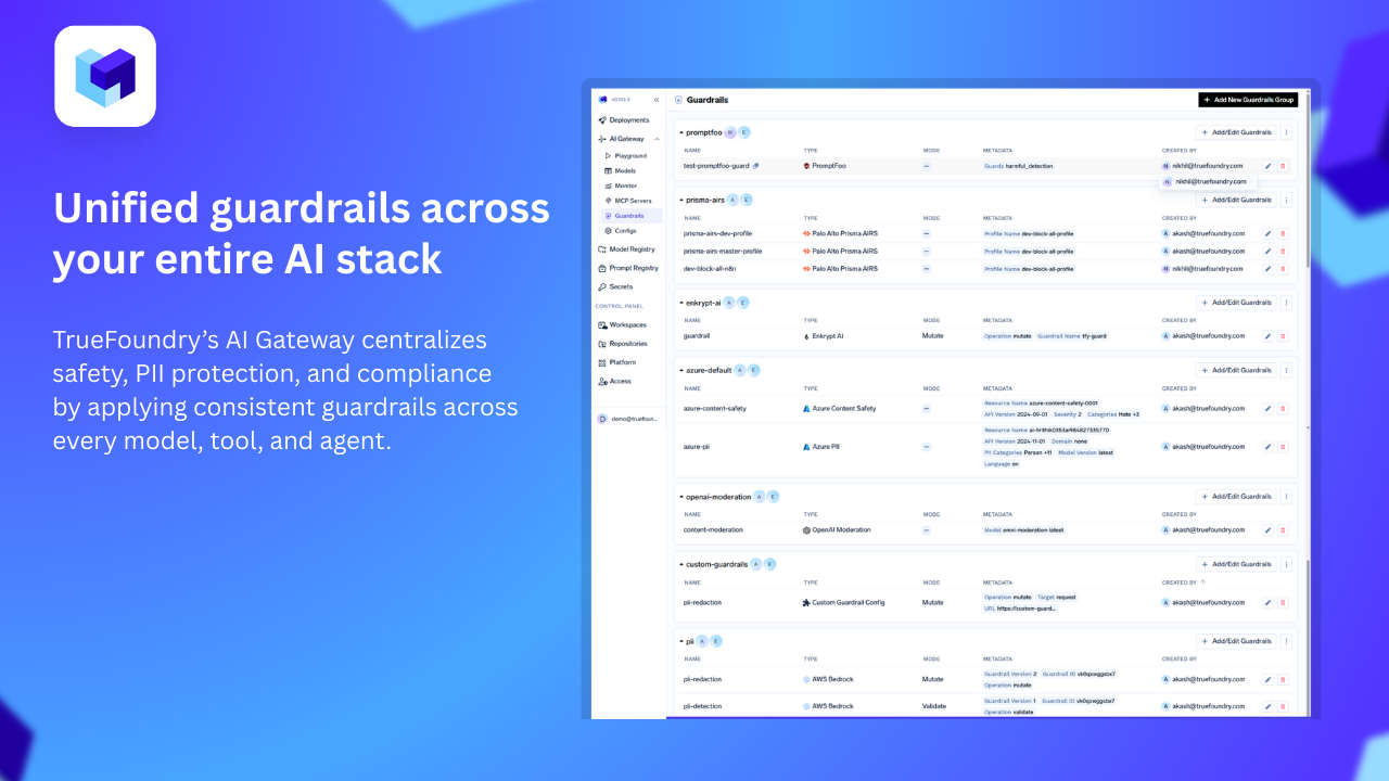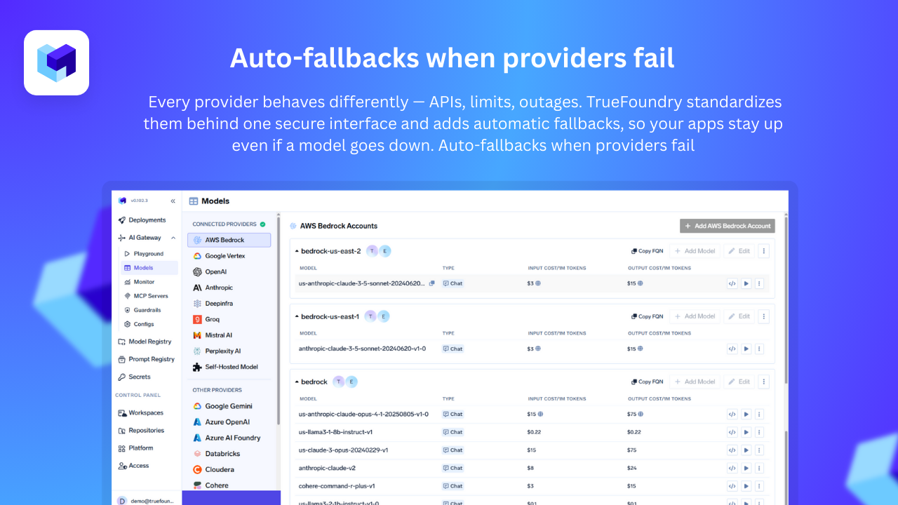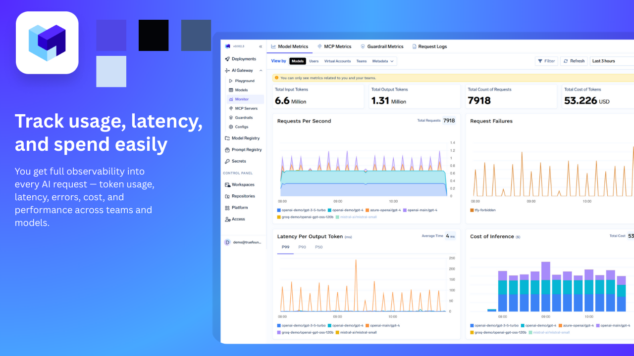 I like trueFoundry's excellent customer service, which is crucial when you're under time pressure and need to understand complex AI gateway systems. The breadth of product features is impressive, and the CLI for config as code is beneficial as it integrates seamlessly with our CI/CD pipeline, making changes efficient and systematic. The initial setup was easy, and the platform provides a central view for usage and cost monitoring while ensuring business continuity by automatically routing traffic to another provider if there's an outage. Review collected by and hosted on G2.com.