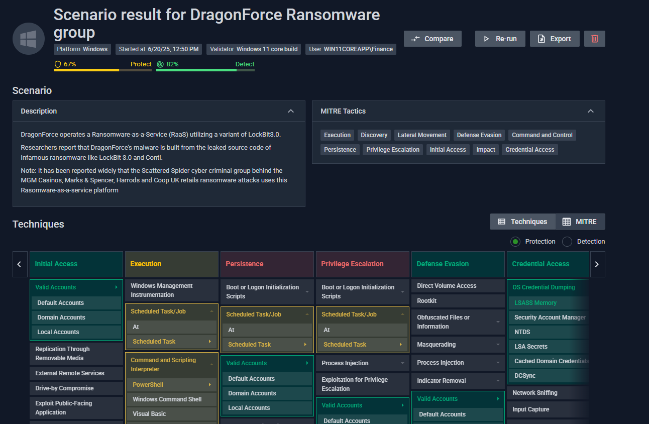 MITRE ATT&CK® Alignment: Unlike tools that merely emulate Indicators of Compromise (IOCs), Validato directly tests the specific MITRE ATT&CK Techniques exploited by threat actors to validate the actual effectiveness of your detection and protection capabilities.