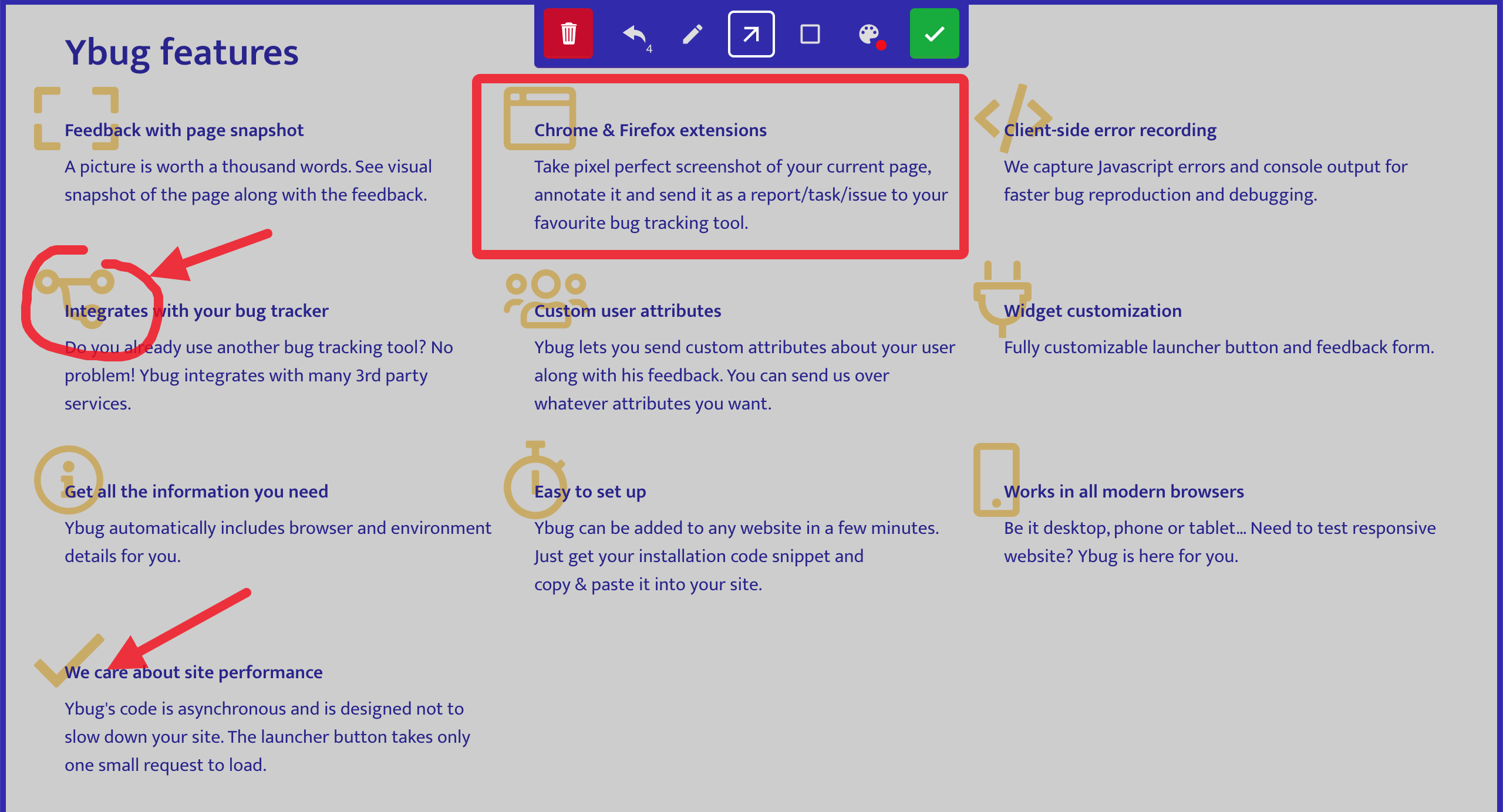 Nothing really. A small nice-to-have feature would be guests mode, but Ybug sends all reports to our PM tool anyway where all the guests are already in. Review collected by and hosted on G2.com.