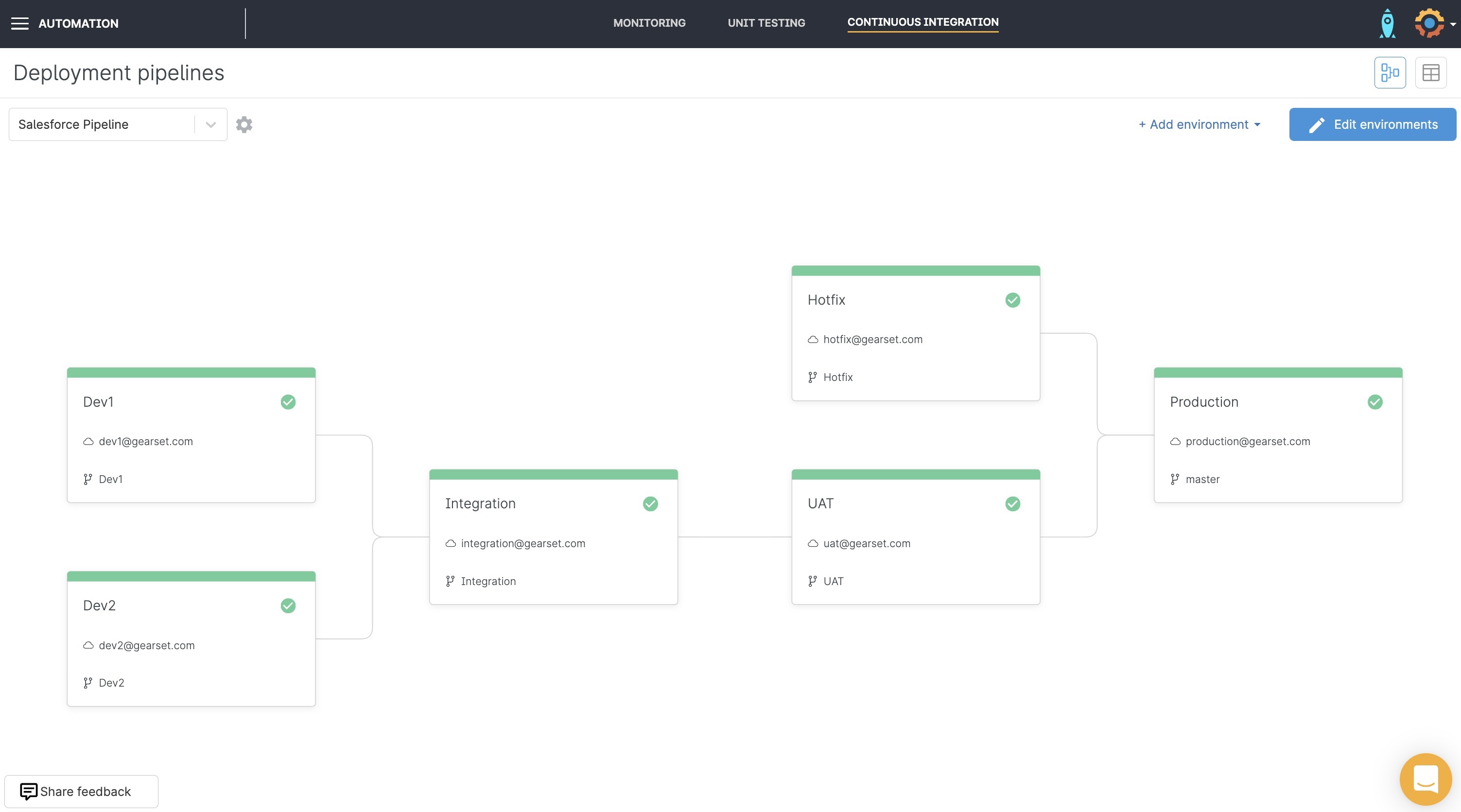 A Gearset é uma parceira da Salesforce e tem apoiado equipes de Salesforce globalmente desde 2015. A plataforma é utilizada por organizações que gerenciam múltiplas organizações (em várias regiões), lançamentos frequentes e requisitos complexos de conformidade, ajudando as equipes a reduzir o risco de implantação, melhorar a visibilidade operacional e manter o controle sobre os processos de gerenciamento de mudanças do Salesforce.
